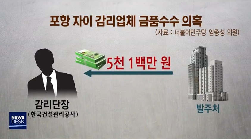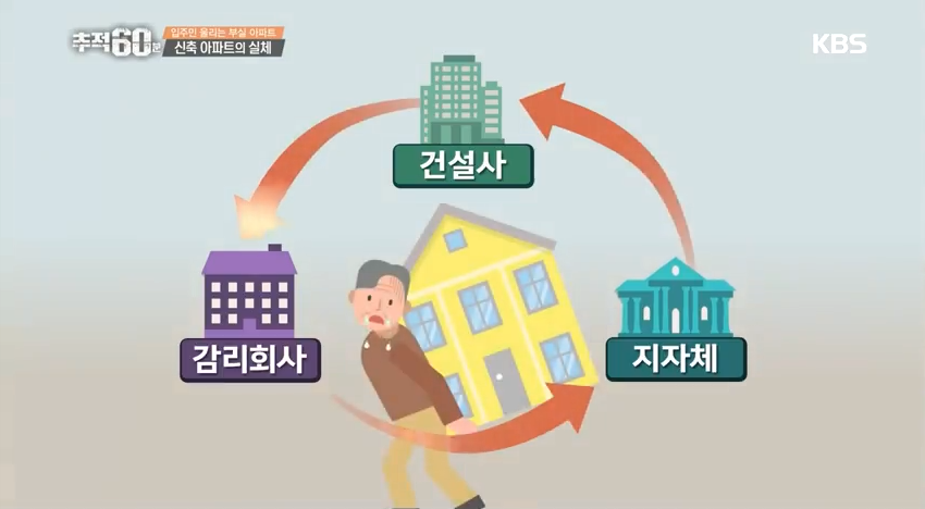 감리자는 지방자치단체가 선정해야한다. 그러나 감리 비용을 시공사나 시행사가 지불하기 때문에 그들이 자체적으로 지정하는 구조다. 을이 갑을 감리한다는게 말이 되는가? 아래 뉴스데스크의 발주처-감리업체 간 금품수수 의혹을 보면 기가 찬다. 이정도면 카르텔이라고 해도 무방하지 않을까?