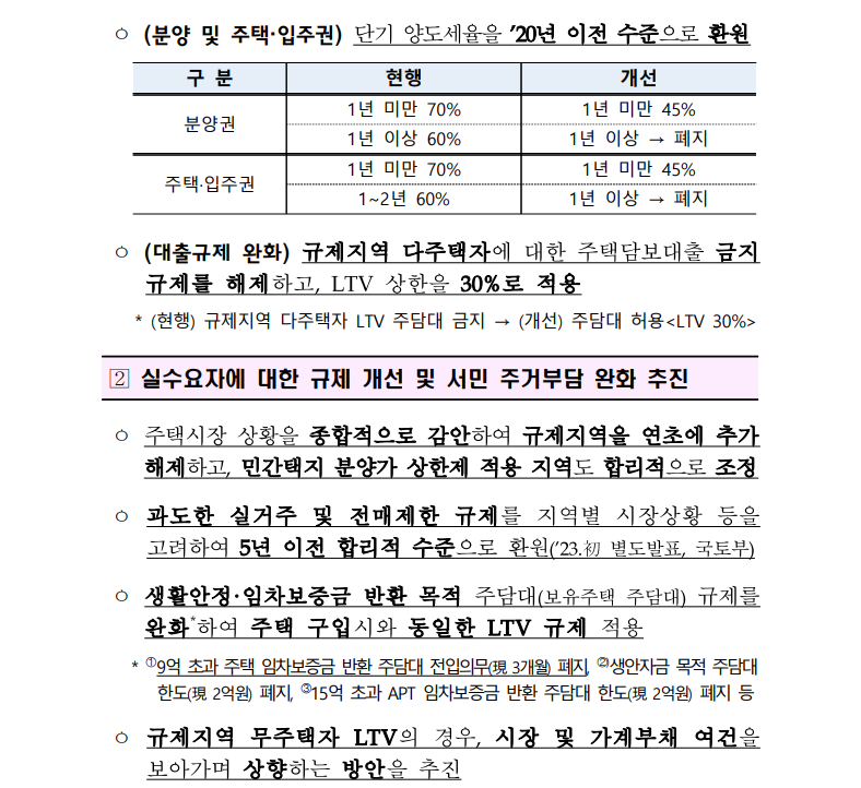 부동산 시장 연착륙 관련 대책만 따로 뽑아봤습니다.