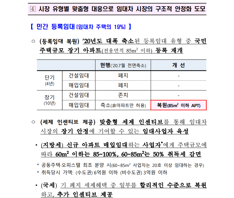 *조정대상지역 내 매입임대>>양도세 중과배제, 종부세 합산배제