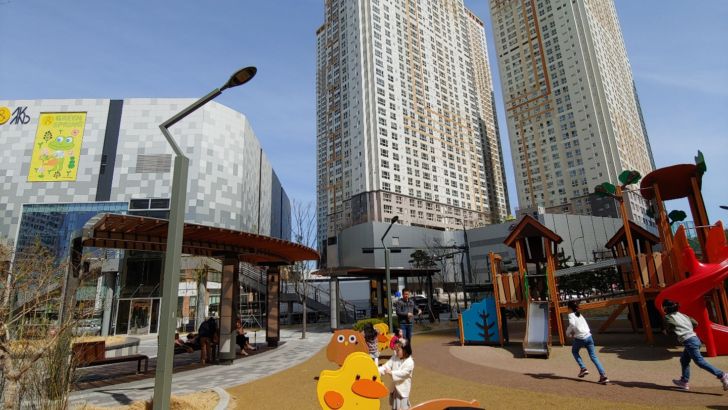 열이 높게 오른 아픈아이가 맞는지 의심될 정도로 잘 노는 우리 딸. 역세권의 명물인 2단 미끄럼틀을 다섯 번 정도 타고 빨간색 회전형 미끄럼틀을 10번 정도 탔다. 날씨가 따듯하니 이른 시간임에도 불구하고 놀이터에 아이들이 참 많다. 부모님과 함께 나온 유아들부터 덩치가 제법 큰 초등학생들까지 많이도 놀러 나왔다.