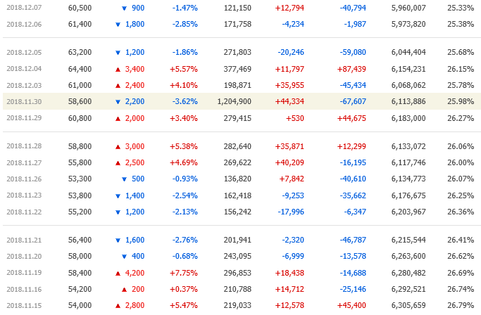 11월 중순부터 기관의 순매수가 증가하며 본격적인 상승을 준비한다. 이때부터 언제 살까 타이밍을 재고 있었다. 결국 11월 19일에 일부 매집을하고 거래량이 또 한 번 크게 터지던 11월 30일에 매집에 대한 확신을 하고, 평단가 5.8만 원에 수백 주를 잡았다. 내가 주식을 매수할 때 하나 더 보는 게 있는데, 네이버 종목게시판이다. 그곳이 침통한 분위기면 일단 매수를 고려한다.