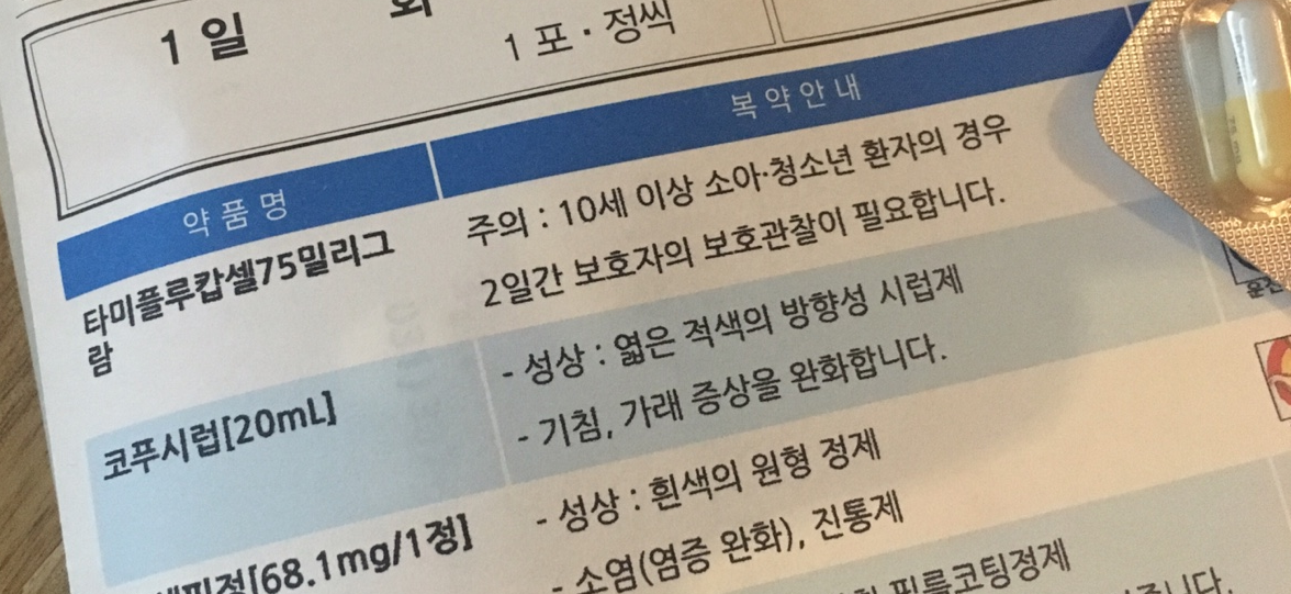 A형 독감(신종플루) 1일차 타미플루와 해열제 동시복용