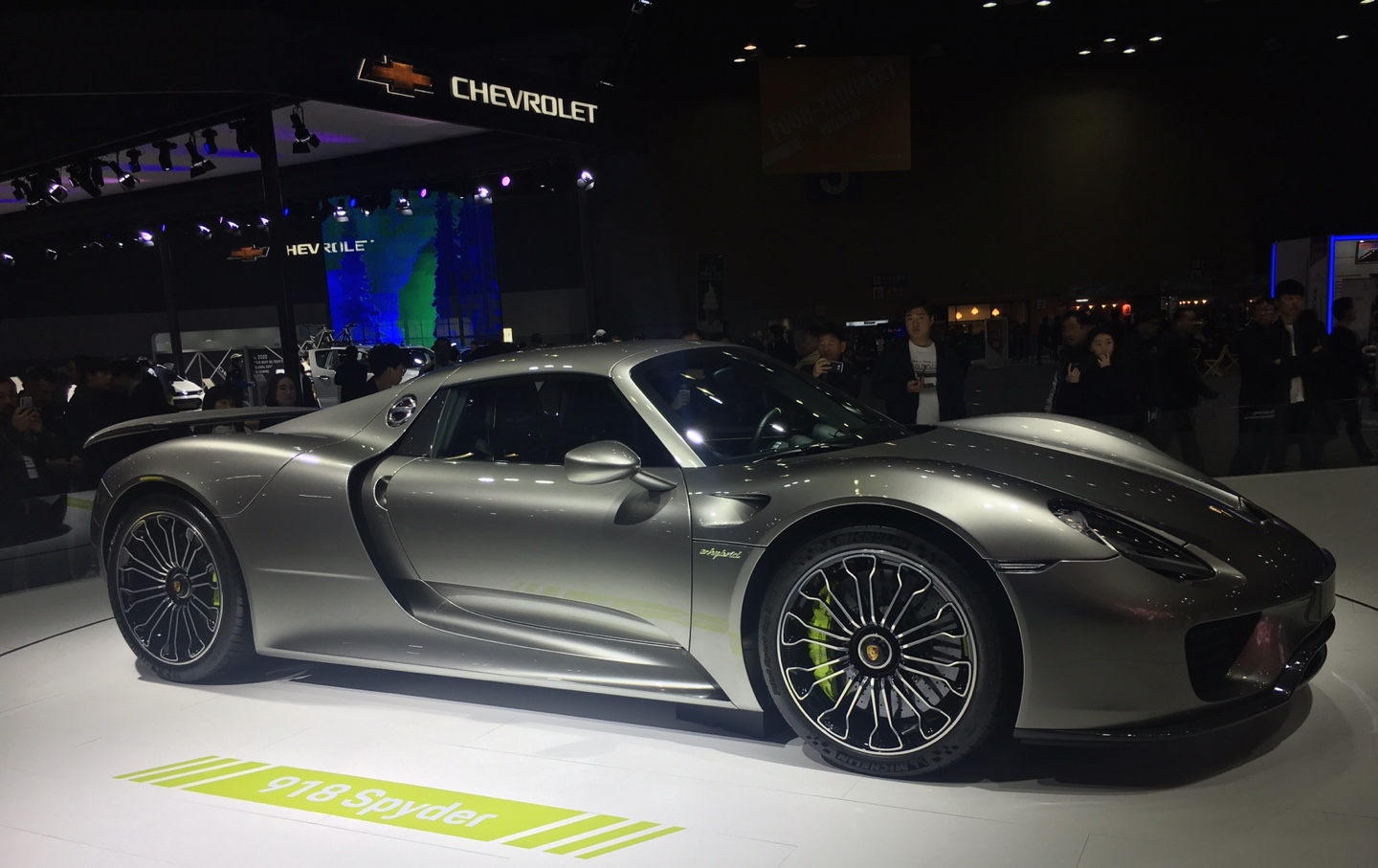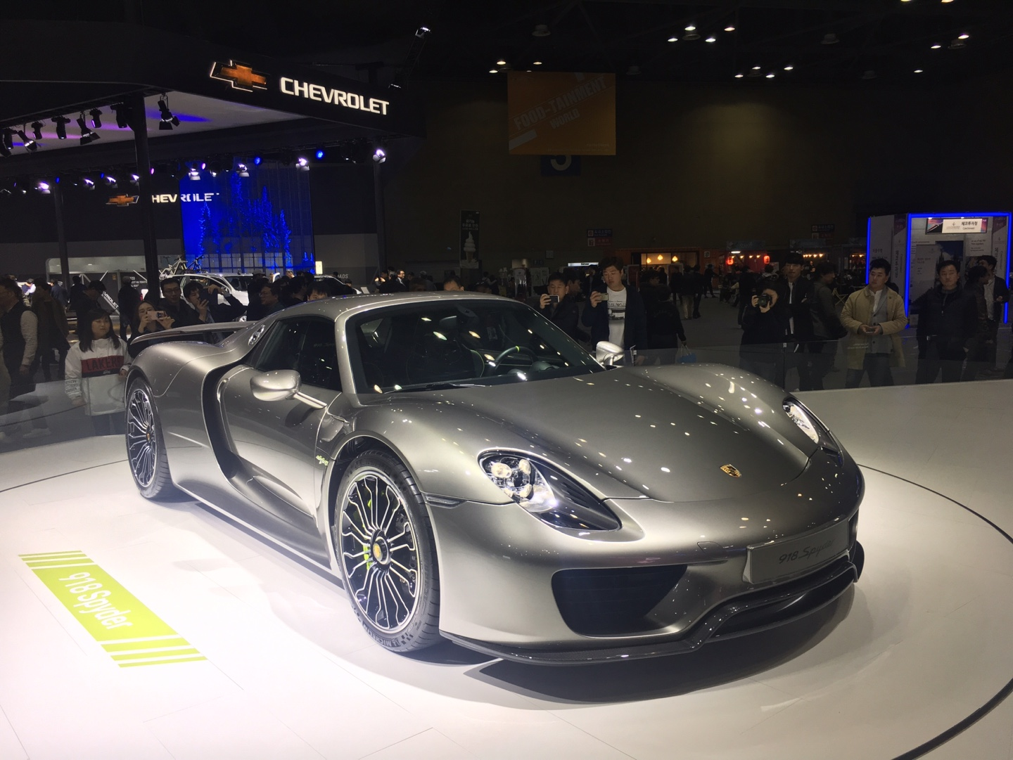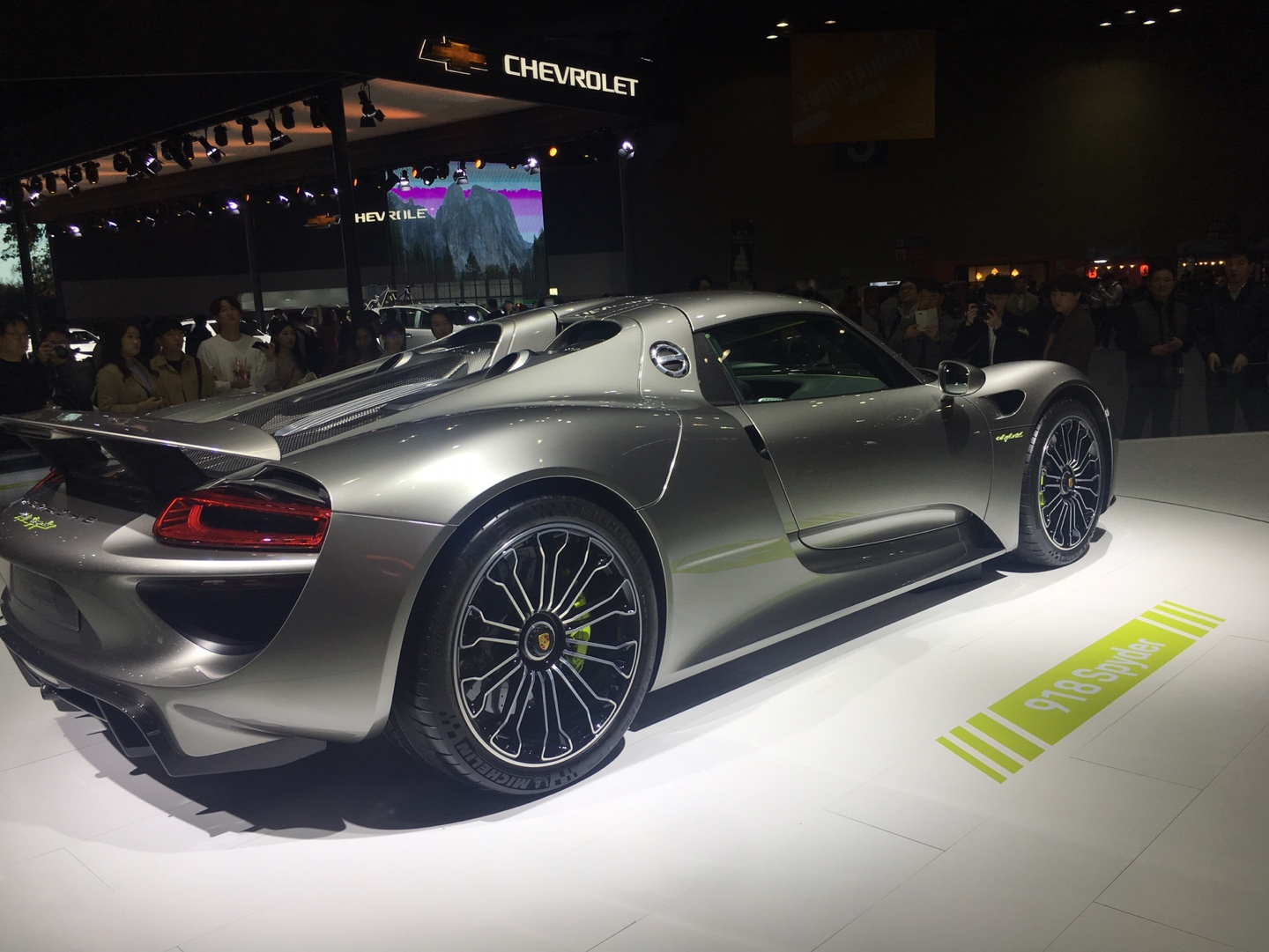 2019 서울모터쇼의 포르쉐 부스에는 참 볼거리가 많았다. 반면 탈거리는 없었다. 모터쇼에 온 모든 사람들의 눈을 사로잡은 차가 한 대 있었으니, 그 이름도 유명한 포르쉐 918 스파이더이다. 817,000달러(한화 약 9.4억원)나 되는 모델이라 공도에서 실물로 보기가 쉽지 않다.