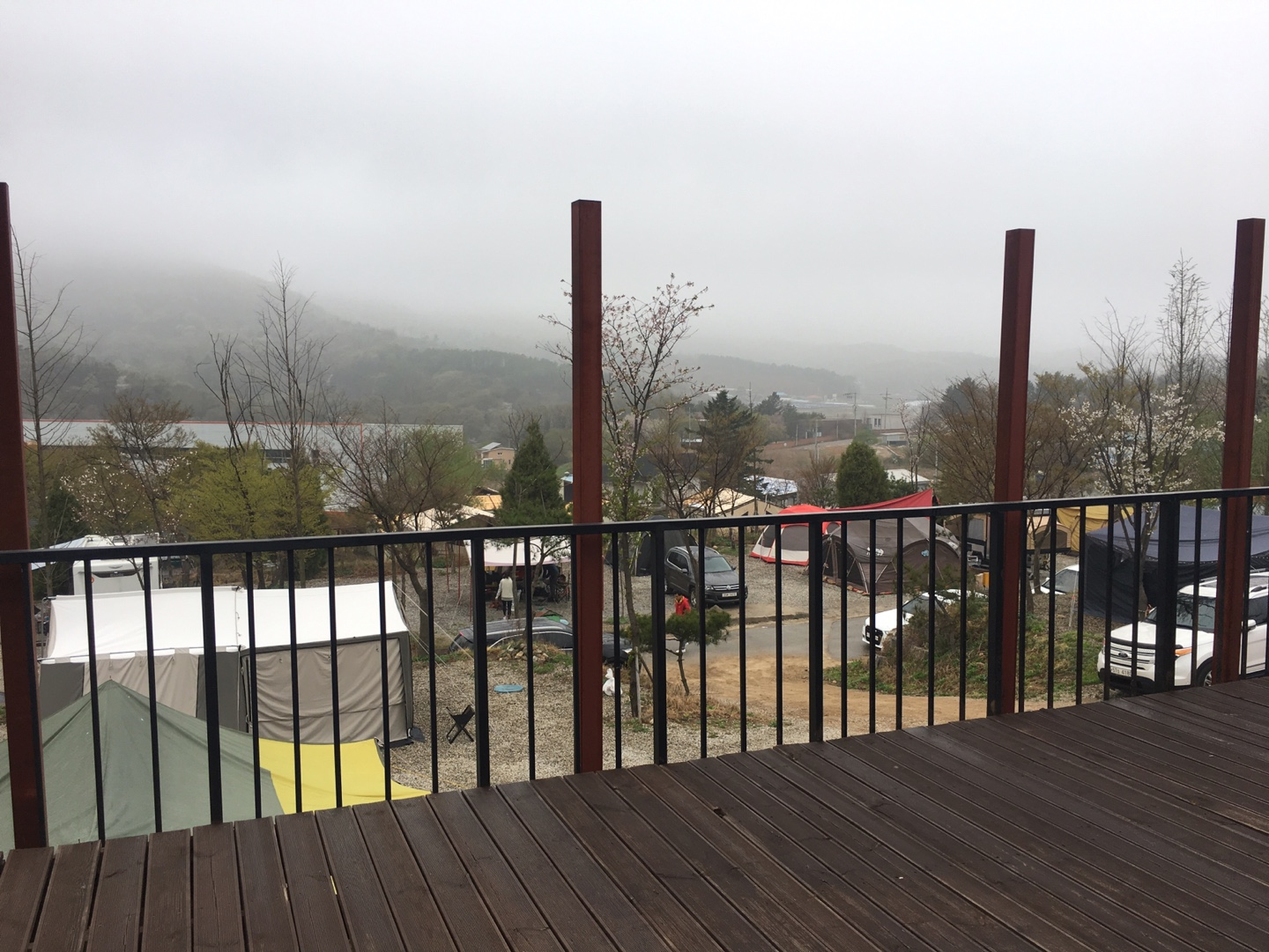 난 데크가 좋은데 아쉽게도 데크는 없었지만, 그래도 흙바닥이 아닌 파쇄석이라 배수가 아주 괜찮았다. 밤에 소나기가 강하게 내렸고, 새벽에도 이슬비가 왔는데 파쇄석 바닥 덕분에 배수가 아주 잘되어 텐트의 오염도 없었고 습한 느낌도 없었다.