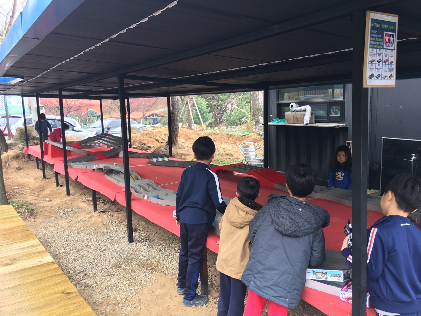 캠핑장에 이런 장비가 있는 곳은 처음봤다. 흔히 볼 수 없는 미니카 트랙을 엄청나게 길게 연결했다. 게다가 캠핑장 사무실(매점)에서 타미야 정품 미니카와 모터까지 팔고 있었다. 완전 취향저격이다. 예전 달려라 부메랑 등의 만화로 미니카 조립에 대한 향수가 남아있는 30-40 아버지 세대는 지갑이 자동으로 열린다. 우리 딸은 당장은 흥미가 없어 사달라고 안 했는데, 다음번엔 우리 집에 있는 타미야 미니카들에 강력한 모터와 충전지를 활용해서 1등을 먹을 생각이다. 물론 우리 딸이..