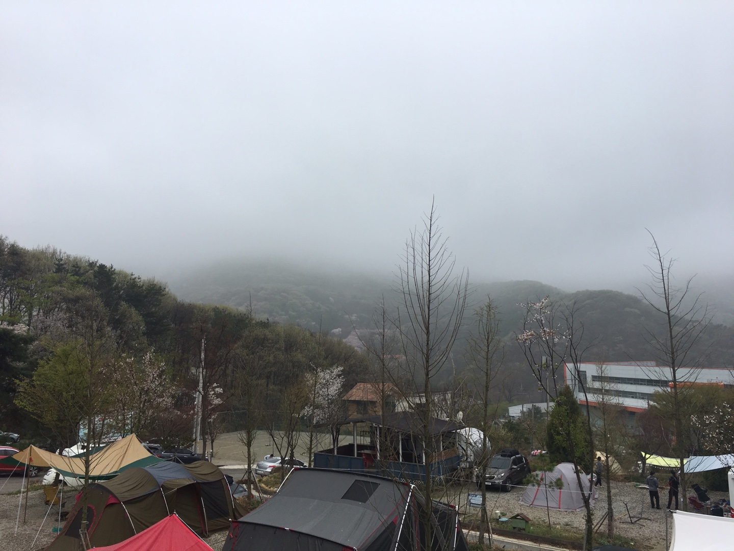 캠핑장 옆에는 회사 1박 야유회를 진행하는데 적합해보이는 펜션 같은 곳이 있다. 절대 고급진 곳은 아닌데 실제로 어떤 단체에서 야유회를 하고 있었다. 누군가는 마이크를 잡고 사회를 보고 있었고 연신 함성이 터져 나왔다. 노래도 부르더라. 캠핑 사이트에서도 들을 수 있었는데, 그냥 흥겨웠기 때문에 나쁘지 않았다. 캠핑장 근처에 벚꽃이 아직도 피어있다.