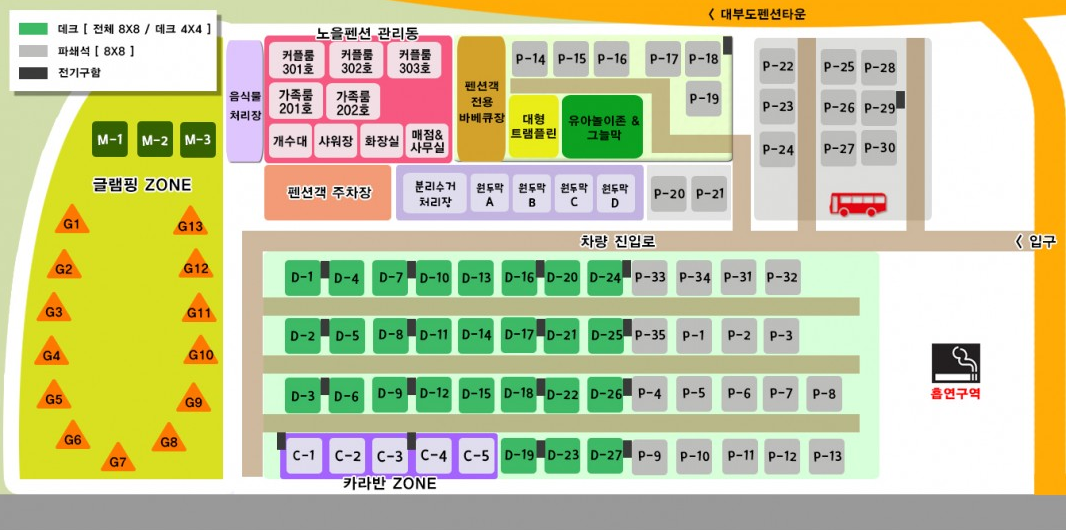 캠핑 장비가 없다면, 글램핑이나 카라반도 준비되어 있으니 저쪽으로 가도 되겠다. 그런데 성수기 15만원이면 그냥 몇만 원 더 보태서 송도의 5성급 호텔에 가는 것이 낫다고 생각한다. 캠핑은 내 텐트에서 하는 것이.. 현재 비수기 주말이라 요금은 데크가 40,000원 파쇄석은 38,000원이다.