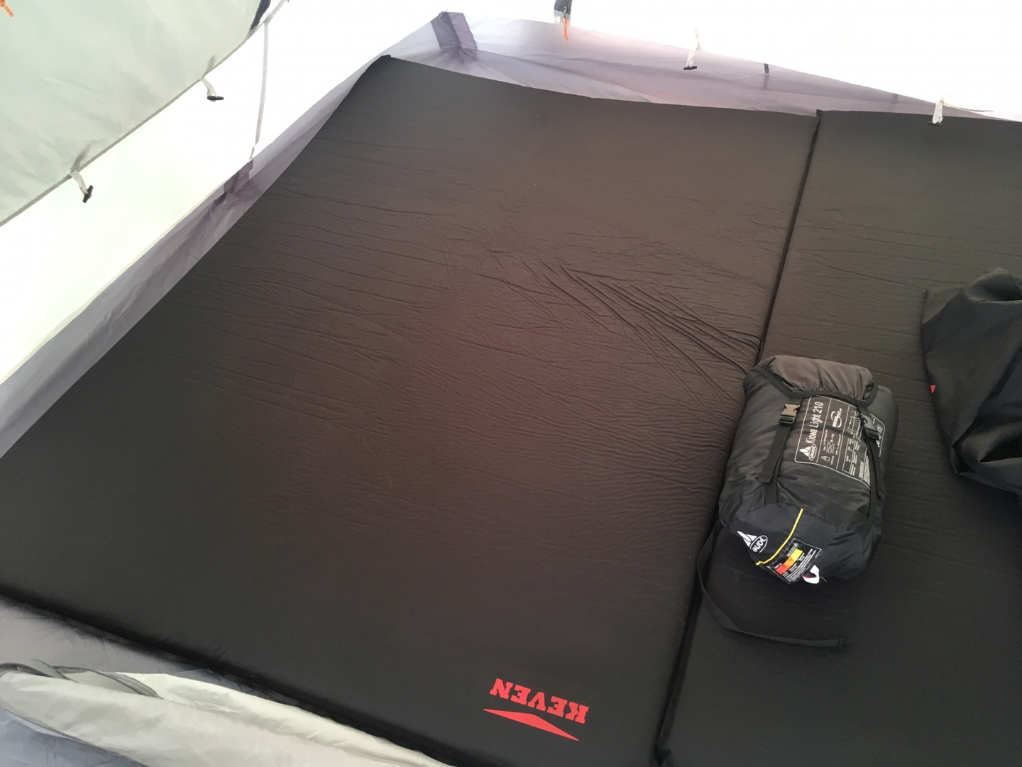 그리고 2인용을 사도 그렇게 크지 않으니, 3~4인 가족이라면 2인용짜리 2개를 사는 것이 좋겠다. 우리 가족은 이너텐트 안에 자충매트 2개를 나란히 깔고 셋 모두 넓게 잔다. 스노우라인 미라큼패밀리 텐트의 이너텐트에 두 개를 치면 완전 저스트하게 딱 들어맞는다. 난 무슨 세트를 산 줄 알았다.