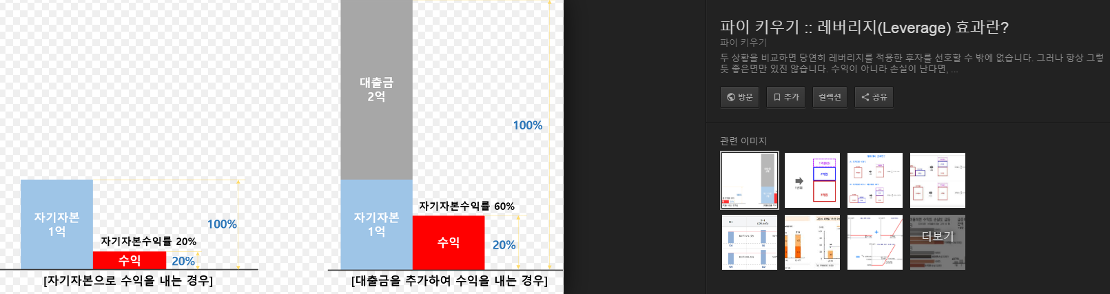 레버리지는 부동산에만 해당되는 것이 아니다. 대부분의 사업 또한 레버리지 효과를 기대하며 투자를 하는 것이다. 은행이 사업자 대출을 해주는 이유이기도 하고.