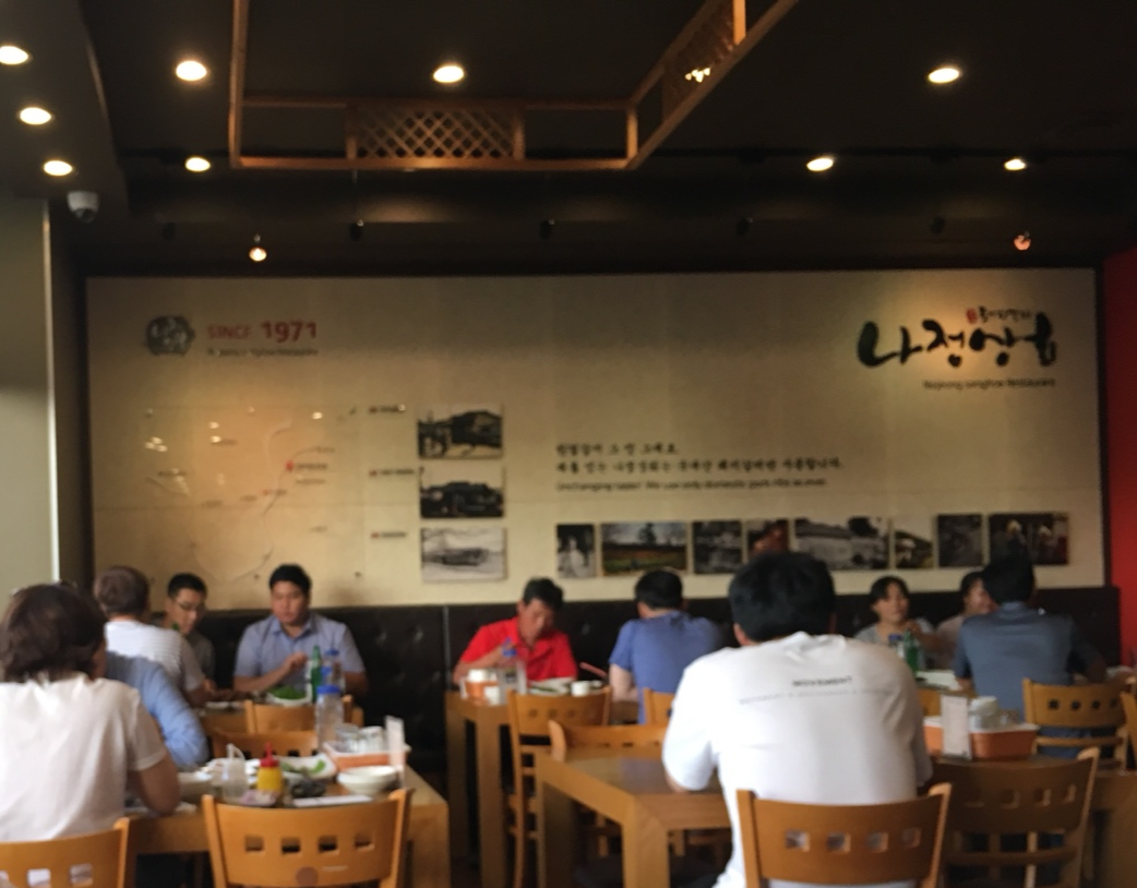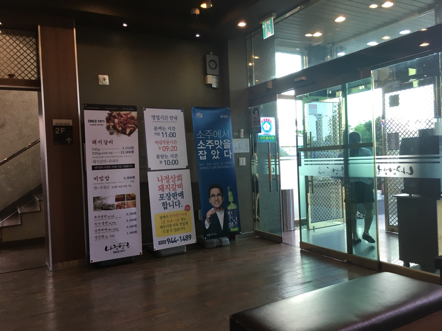 황금같은 8월초 휴가시즌에 전남대학교 출장이 잡혀 출장겸 여행으로 와이프와 아이를 데리고 광주광역시의 홀리데이인 호텔을 잡았었다. 주변 맛집을 검색하던 중 각종 블로그에서 광주의 돼지갈비 맛집이라며 극찬을 마지않던 '나정상회'를 발견하고 곧장 달려갔다. 호텔에서도 아주 가까웠다.