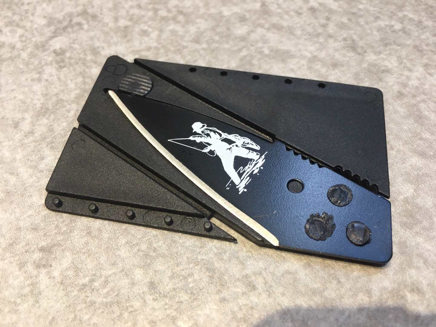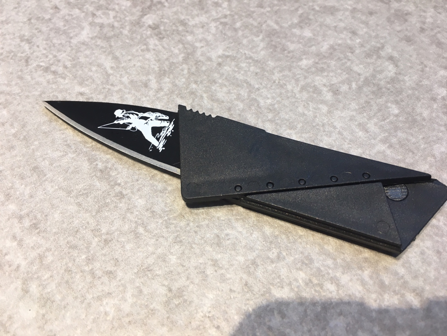 저 다섯개의 암수 구멍을 맞춰야 되는데 저 중 2개 정도가 잘 안 들어감. 일단 접고 나면 꽤 쓸만한 칼로 변모한다. 캠핑에서도 차 안에서도 급하게 뭔가 자를 때(특히 딸내미 장난감 포장..) 유용하게 쓸 수 있을 것 같다.
