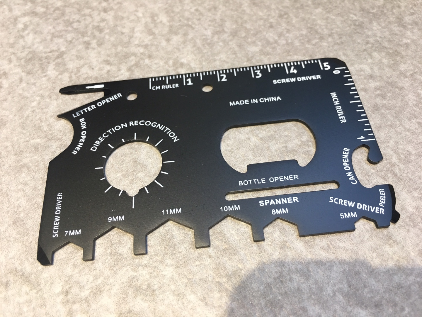 캠핑용 휴대용 칼도 물건인데, 이놈이 더 마음에 든다. 무려 11가지 기능이 이 하나의 철판 안에 들어가있다. 무심코 주변인들에게 주는 선물로도 좋을 것 같다. 이거 다섯 개 사서 사무실 형들에게 하나씩 줘야겠다. 이런 물건을 집으면 괜히 설렌다. 앞으로 단 한 번도 쓰지 않아도 그냥 좋다.