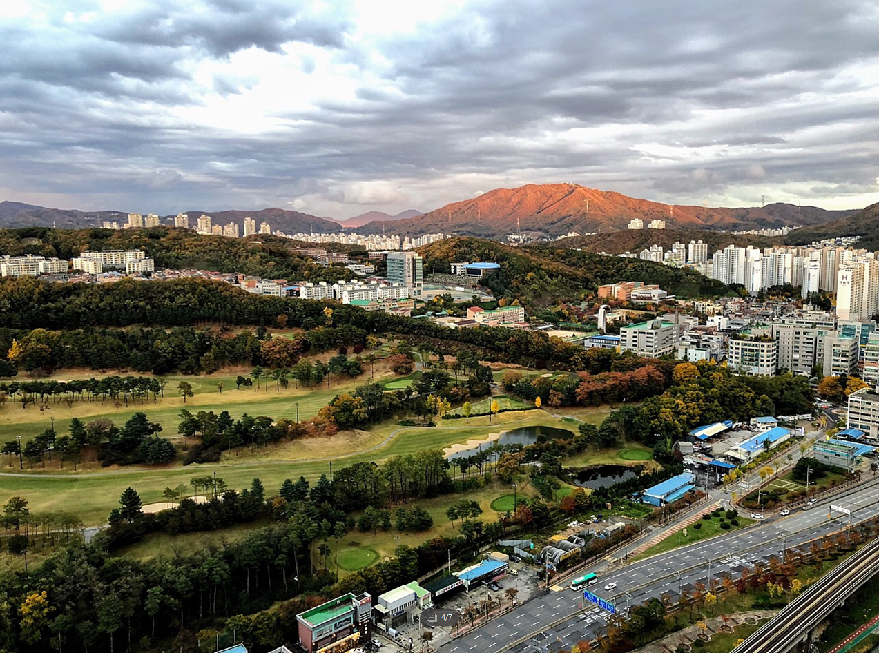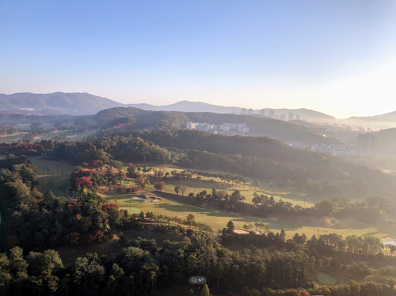 역세권 누군가가 공유한 예술적인 뷰 사진. 센트럴 푸르지오 어느 라인에서 찍은 것 같다. 멀리 보이는 산이 무슨 화산처럼 나와서 더 멋지다.