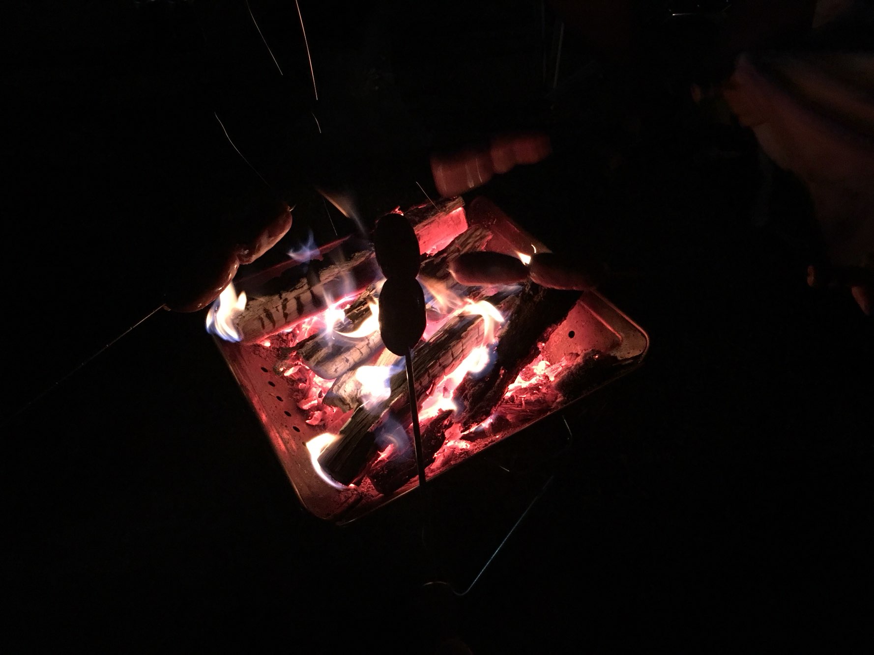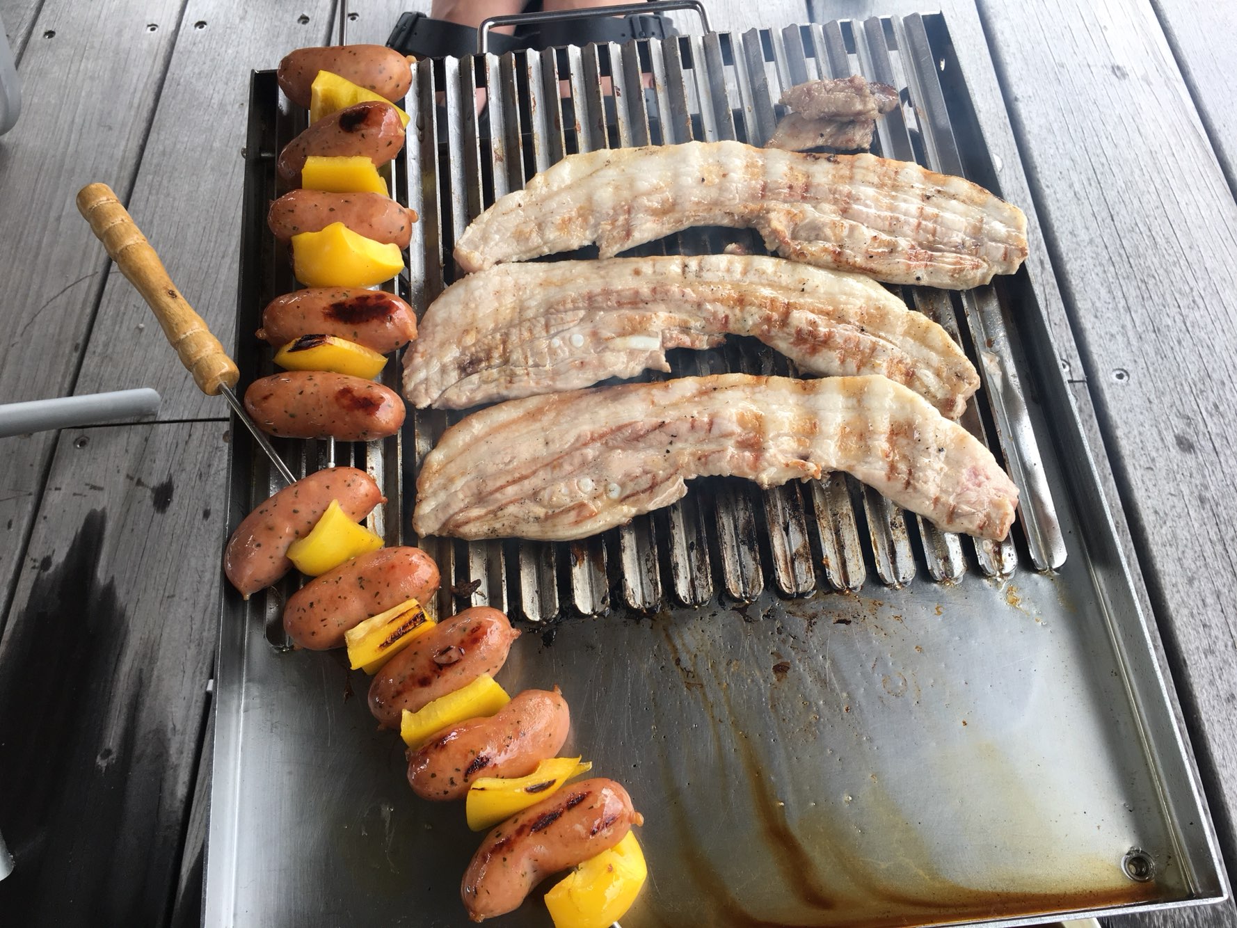 끝불에 소세지 꼬치도 해먹었군요.