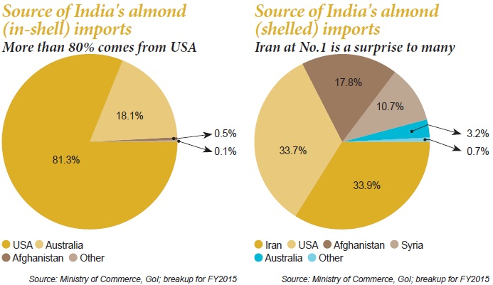 2019년 6월 16일부터 인도 정부는 미국산 아몬드, 호두, 맥박 등 29개 품목에 대해 보복관세를 부과할 것이라고 밝혔다. 작년 6월 21일 도널드 트럼프(Donald Trump) 행정부가 철강 및 알루미늄 제품에 대한 관세를 인상하기로 결정한 후 인도는 그 전년대비 2억 4000만 달러의 손실을 보았다.