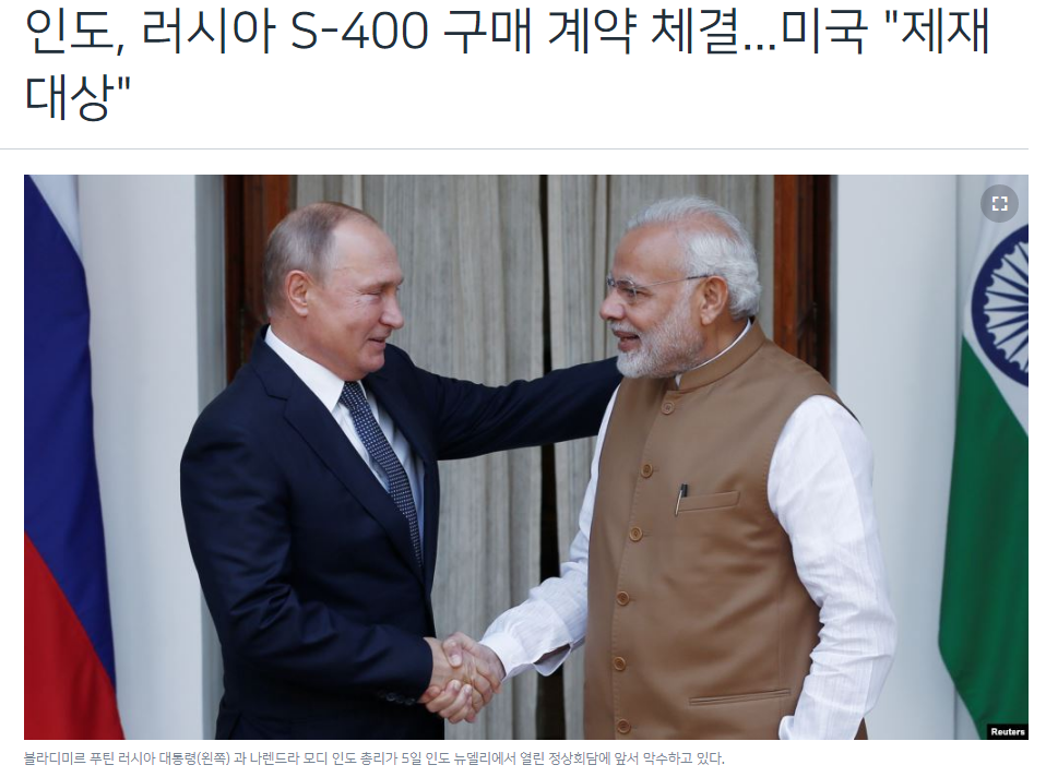 하지만 나렌드라 모디 인도 총리는 미국의 협박에 콧방귀를 뀌며 S-400의 구매를 결정, 푸틴과 악수를 나누며 계약을 체결해버렸다. 이에 빡친 미국은 2018년 GSP를 종료시키며 인도산 제품에 관세를 부과하기 시작하는데 그 스토리는 다음과 같다.