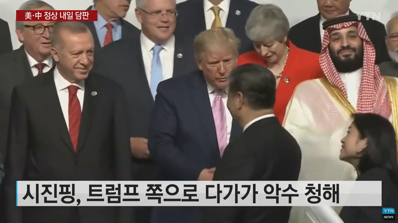 이번 G20 정상회의는 전 세계가 집중하고 있는데, 그 이유는 당연히 미국의 트럼프와 중국의 시진핑 때문. 세계 경제를 휘청이게 하는 미중 무역전쟁에 대한 향후 귀추가 이 회담에서 결정이 되기 때문이다. G20이라 쓰여있지만 미중담판이라 읽히게 되는 이유.
