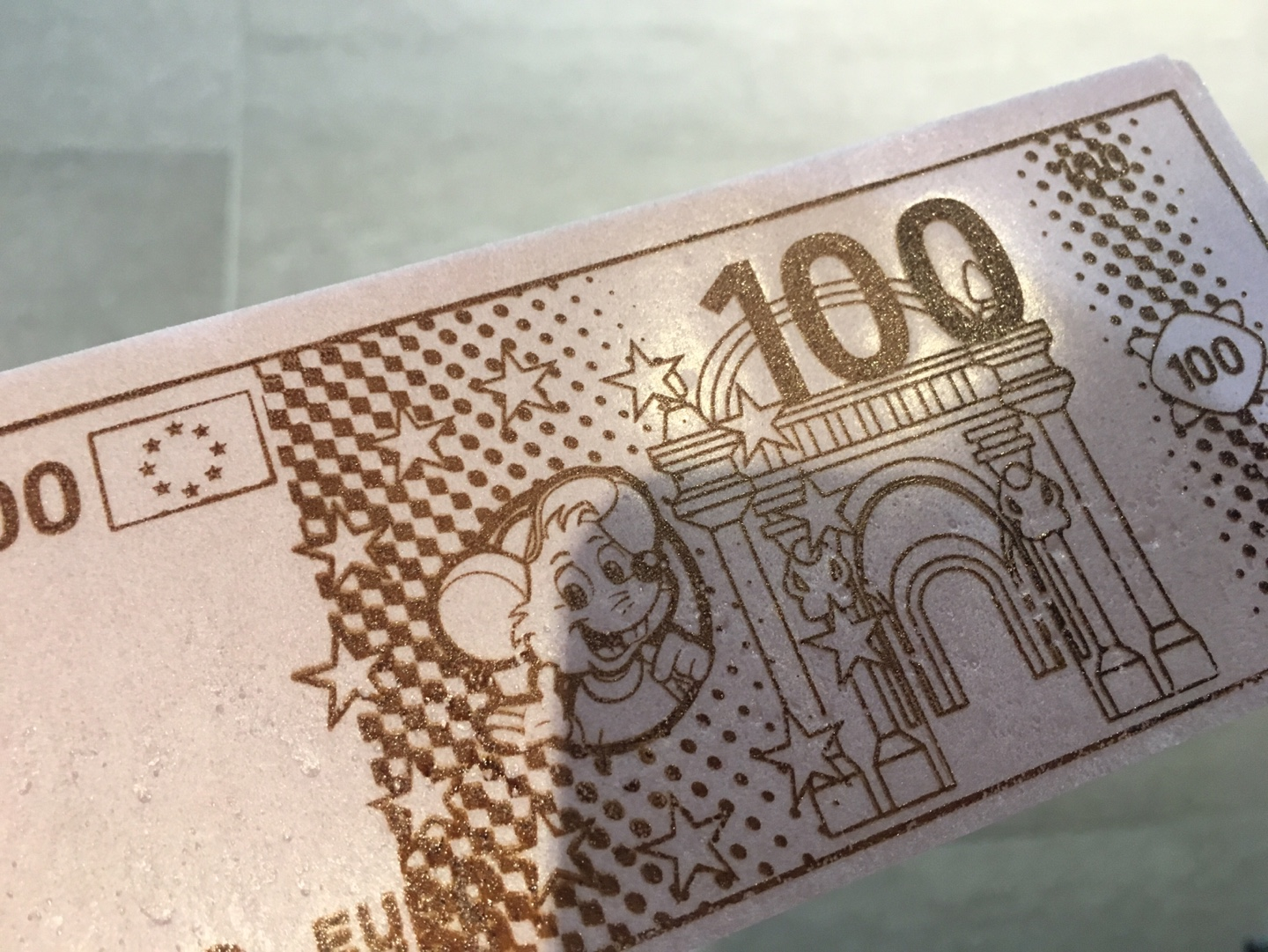 달러들 사이에 이 회사의 트레이드마크인 쥐새끼가 그려진 돈이 있다. 100이라고 써있는데 단위가 나와있지 않다. 처음엔 톰과 제리의 제리인가 싶었는데 제리는 저렇게 생기지 않았음. 어 지금 보니 왼쪽 밑에 유로라고 쓰여있다. 유럽에 가보질 않아서 몰랐다.