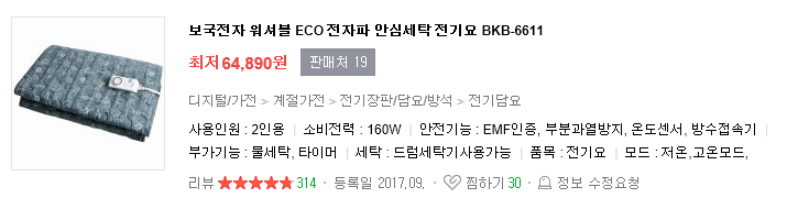 빨아 쓸 수 있는 검증된 전기장판이 필요합니다.