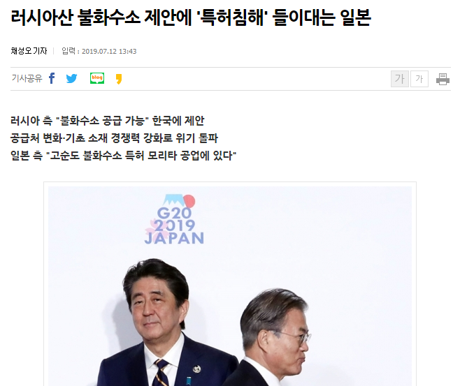 (사실) 러시아가 '제안'을 했다는 사실 그 자체, 일본산 불화수소를 당장 대체할 수 있는 곳은 없다는 것 또한 사실, 다원화가 필요하다는 것도 사실, 일본산 불화수소의 공급 안정성이 매우 떨어졌다는 것 또한 사실.