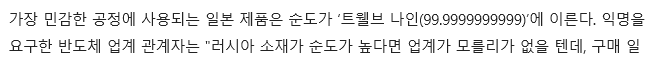 러시아산 불화수소를 반도체 라인에 그대로 적용했다가는 난리가 난다. 적기 귀찮으니 자세한건 생략. 이것도 조선일보의 99.99999999999%와 더불어 마찬가지의 헛소리라 할 수 있다.