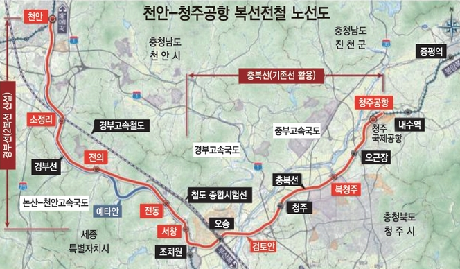 그리고 청주공항부터 천안을 연결하는 복선전철 소식도 있다.