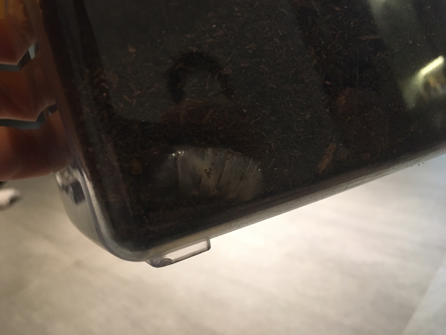 톱밥 교체시 애벌레를 이리저리 치면 스트레스를 받을 수 있으니 가능하면 톱밥을 파주고 새 톱밥을 넣어주라고 하는데 우린 이미 애벌레에게 큰 스트레스를 줬다. 꺼내서 만졌다 ㅠㅠ