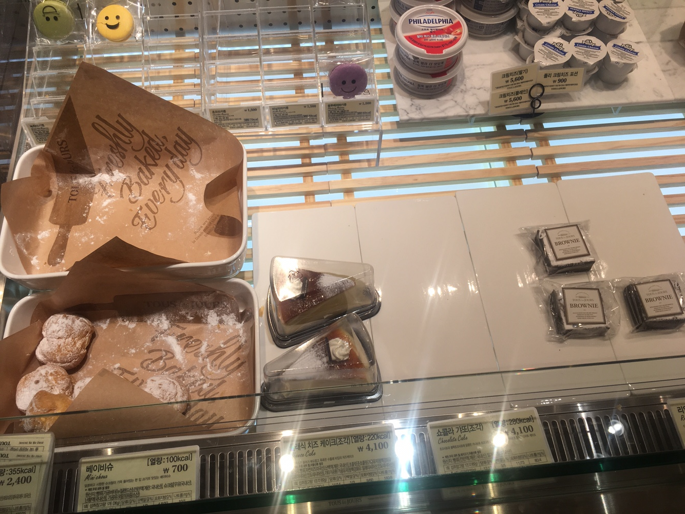 저 오른쪽에 초코브라우니가 물건이다. 뭐가 맛있는지 서치했을때 자주 걸리던 놈이길래 하나 담아왔는데, 와이프와 딸내미가 아주 맛있게 잘 먹었다. 물론 나도 먹어봤는데 초콜릿 맛이 진한게 아주 괜찮았다. 우유나 아메리카노랑 먹음 정말 맛있을 것 같다.