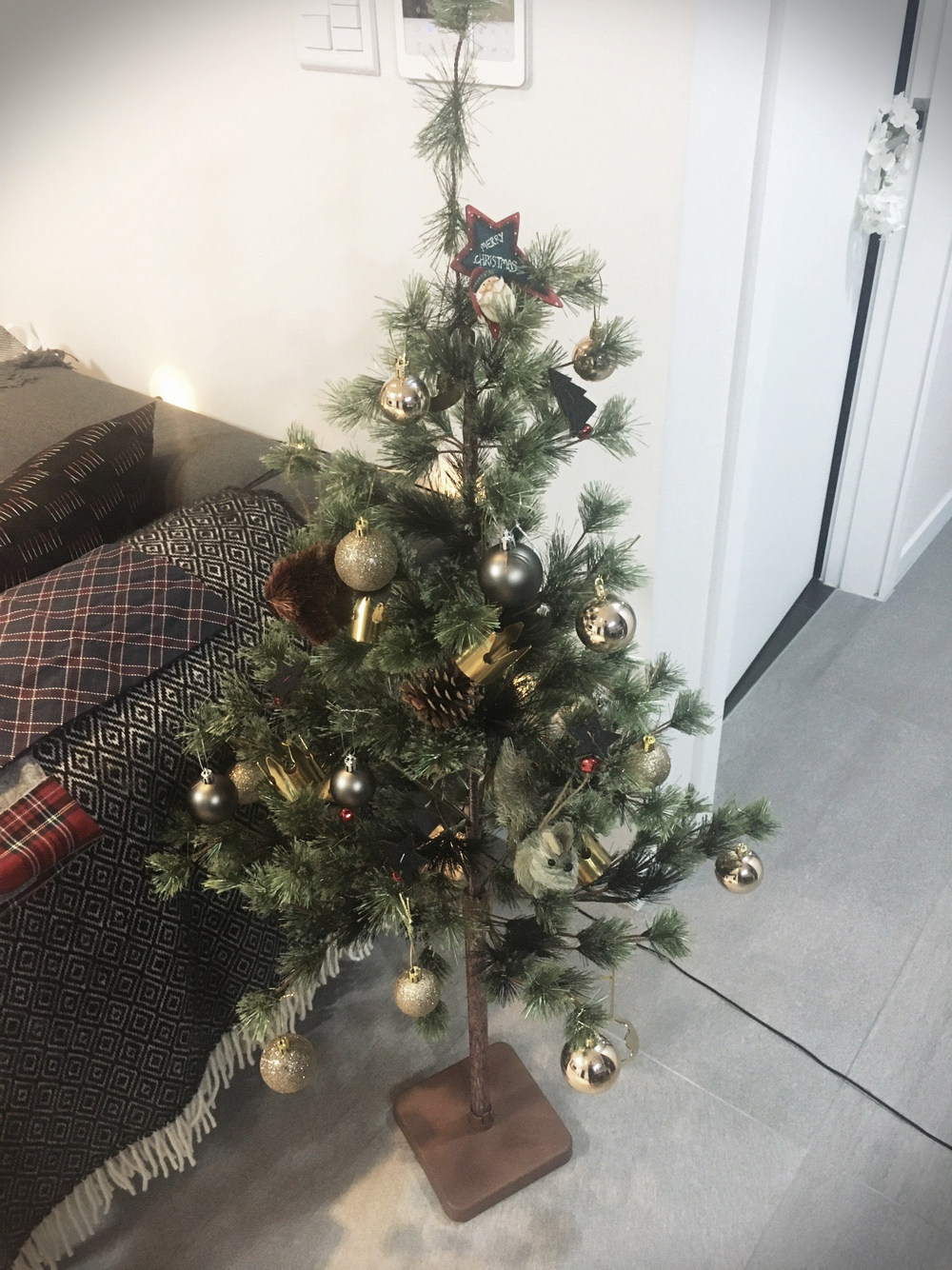 오너먼트까지 달고 나니 꽤 그럴싸하다. 이케아에서 사온 트리와 금속 장식, 다이소에서 사온 오너먼트 도합 9,500원으로 그럴싸한 트리가 나왔다.
