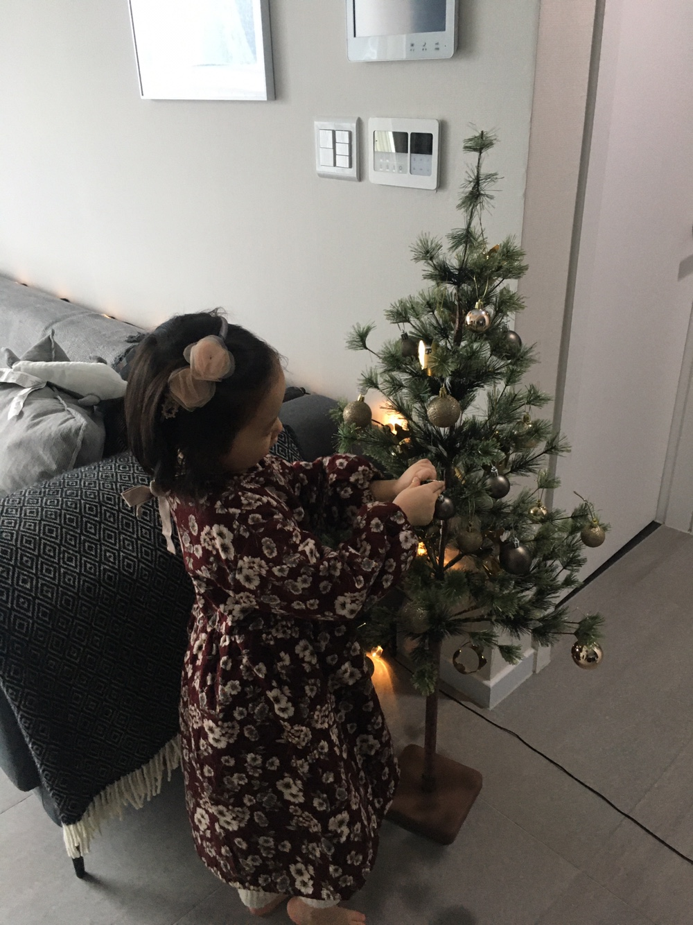 우리 귀여운 딸내미와 함께 열심히 왕관 오너먼트를 뜯었다. 트리를 꾸미는 동안 와이프가 없어서 아쉬웠다. 셋이 같이 했었어야 하는데.. 아직 꾸밀게 많으니까 괜찮다.