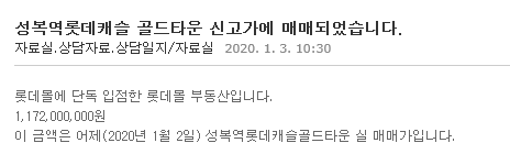 사실 지난 주 적었던 글의 '수지 롯골 12억원'이 이렇게 빨리 올 줄은 꿈에도 몰랐습니다.