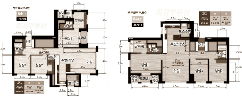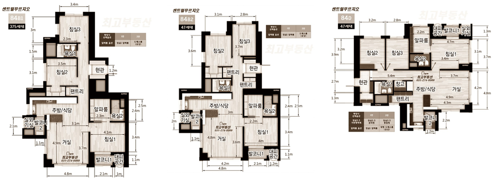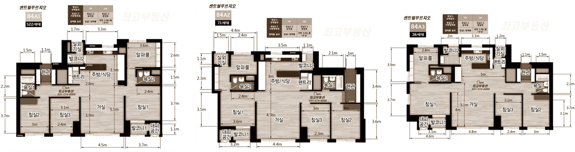 정말 다양한 평면이 있습니다. 주력타입 A1부터(사실상 방 4개. 드레스룸이 아이방만함) 골프장 뷰가 나오는 희소 타입 등 정말 많습니다. 모든 타입이 특장점들이 있습니다.