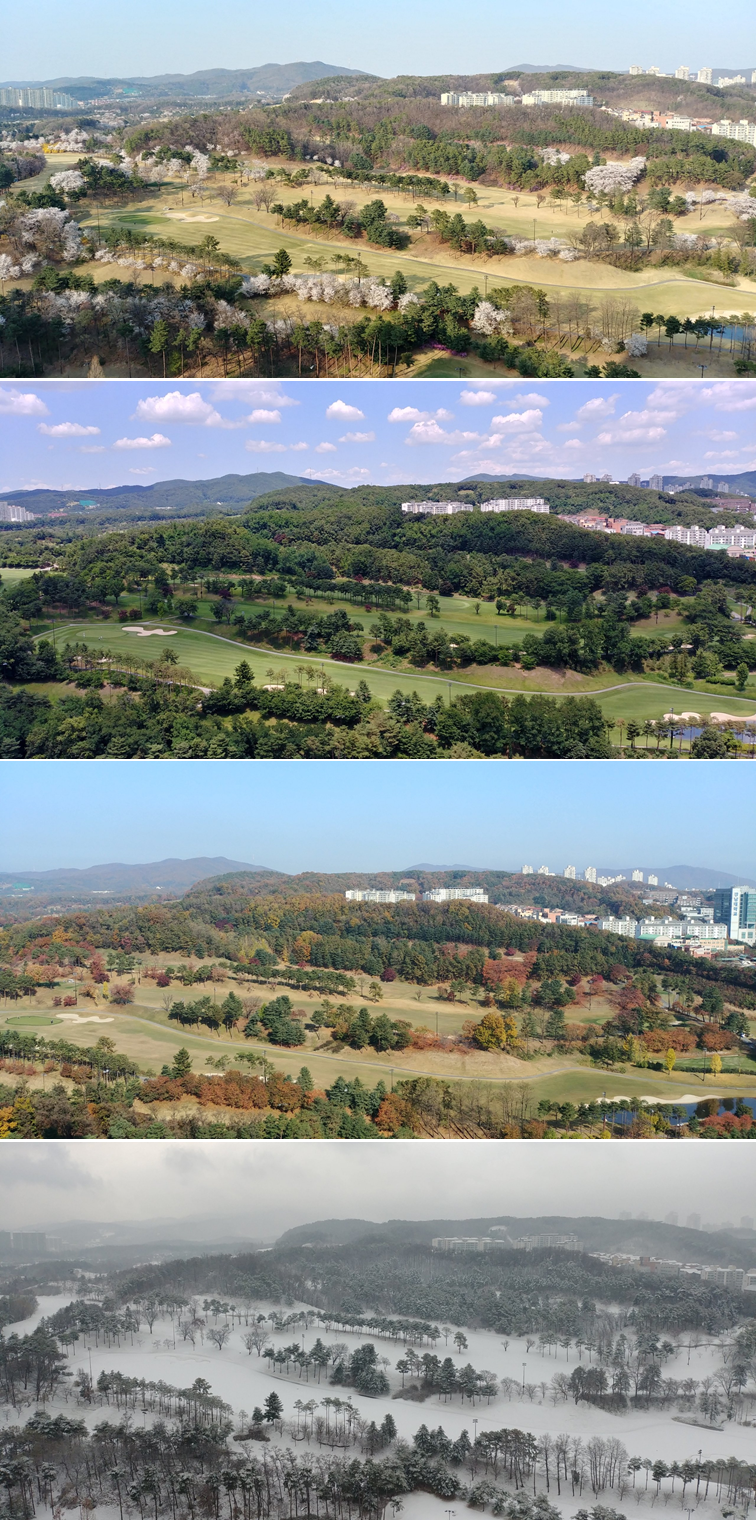 골프장 뷰가 나오는 집들은 말할것도 없거니와, 거실창이 단지쪽으로 향하는 집들도 드레스룸 창과 주방창을 통해 수원CC의 사계(四季, Four Seasons)를 즐길 수 있습니다.
