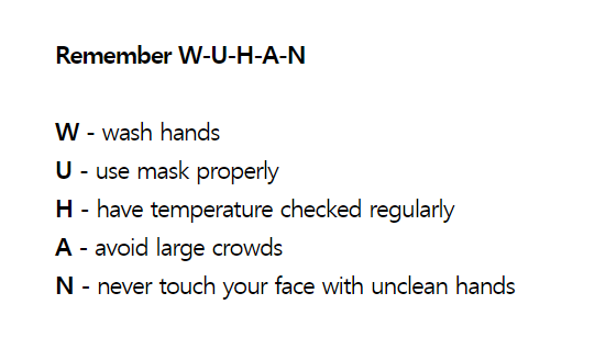 우한폐렴 건강수칙 WUHAN 구호(5행시)
