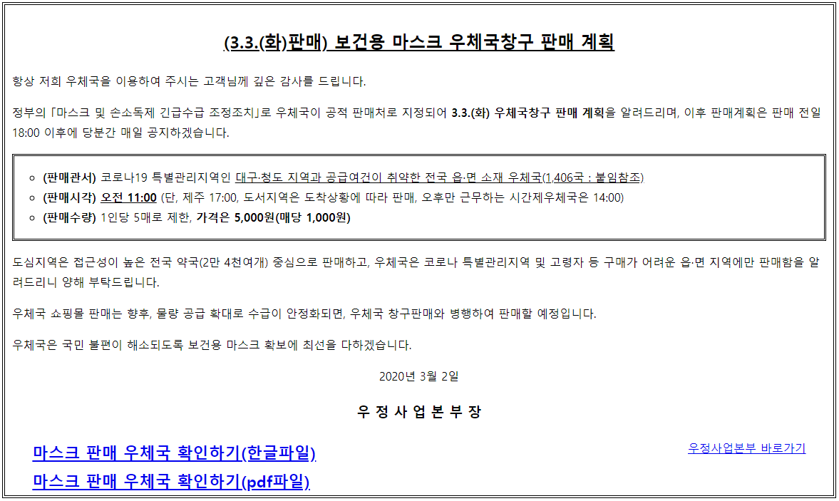 2020/02/27 - [건강] - 마스크 구매처 총정리 : 우체국,쿠팡,네이버,웰킵스 등