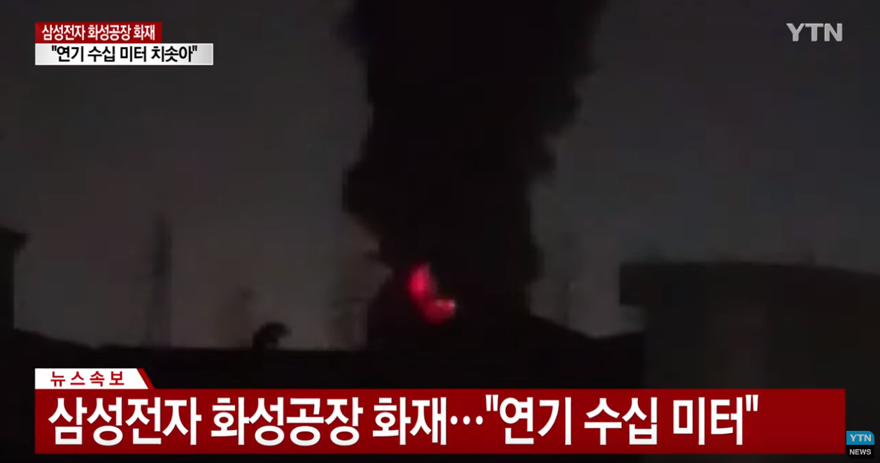 삼성전자 반도체 화성공장에 화재가 발생하였다고 합니다.(3월 8일 오후11시 20분 경) 근처 주민들이 사진을 찍었는데 검은 연기가 수십미터 올라가네요.
