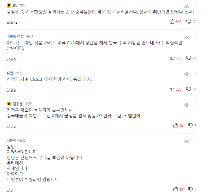 [네이버] CNN, 김정은 수술후 중태 미정부 첩보