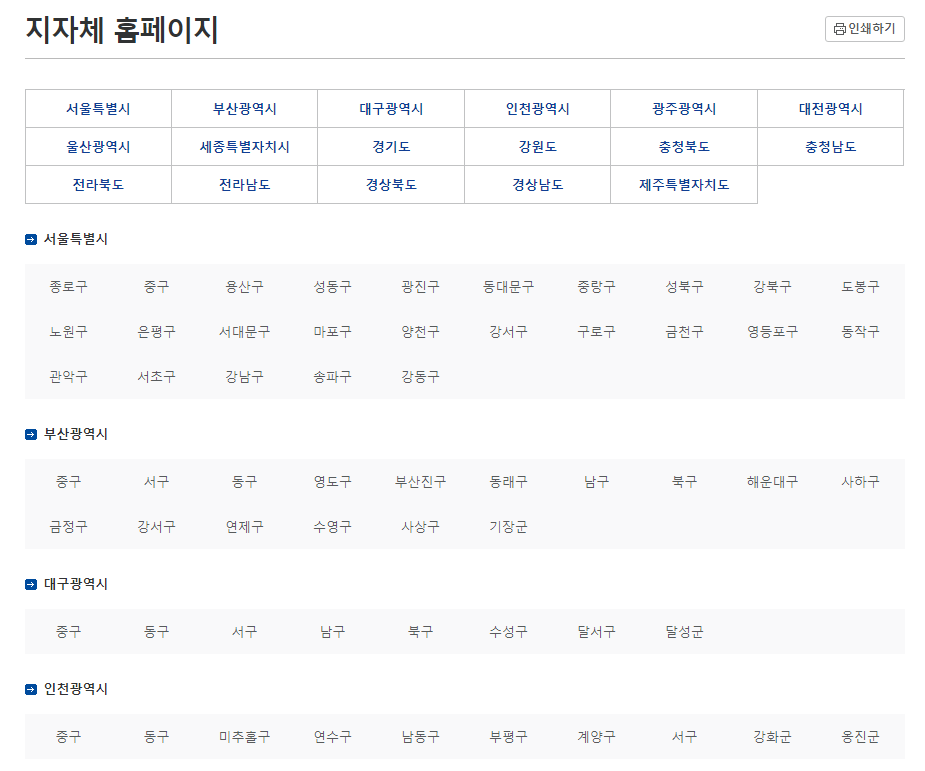 [각 지자체로 가장 빠르게 들어갈 수 있는 행정안전부 운영링크]