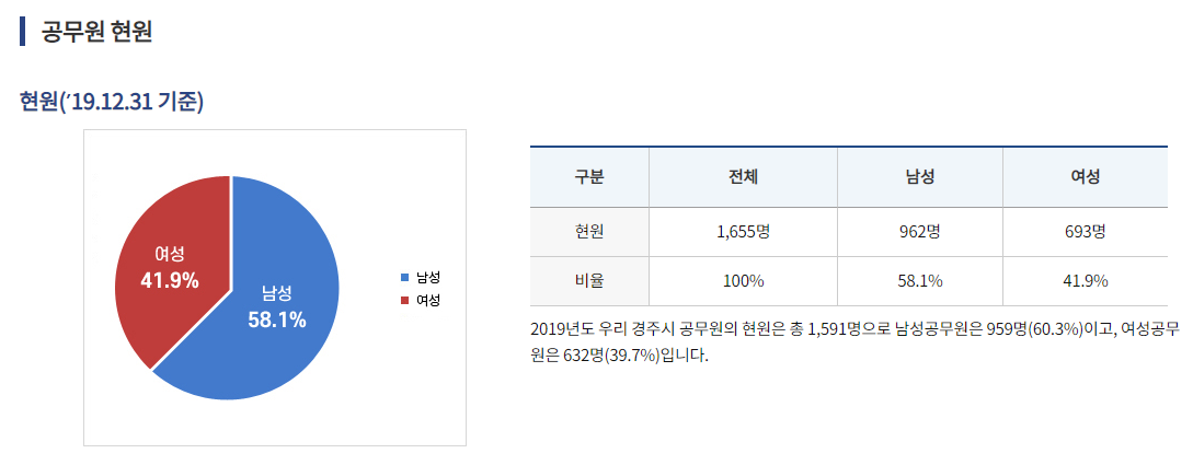 게다가 인원도 어마무시합니다. 아래 표를 보니 1591명입니다. 경주 전체 공무원 수인줄 알았는데 시청 공무원의 수인가봅니다. 확인이 필요합니다. 12년도 기사를 보니 얼추 맞을 것 같기도 하구요.