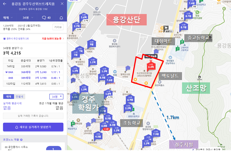 전 계약시 얼마나 고민을 하는지가 제 나름의 지표인데, 경주 두산위브는 고민을 많이 하지 않았습니다. 지도를 보자마자
