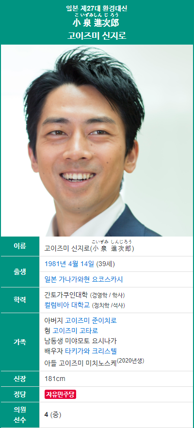 전 일본 총리 고이즈미 준이치로의 아들이죠.