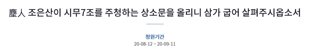 塵人 조은산이 시무7조를 주청하는 상소문을 올리니 삼가 굽어 살펴주시옵소서 > 대한민국 청와�
