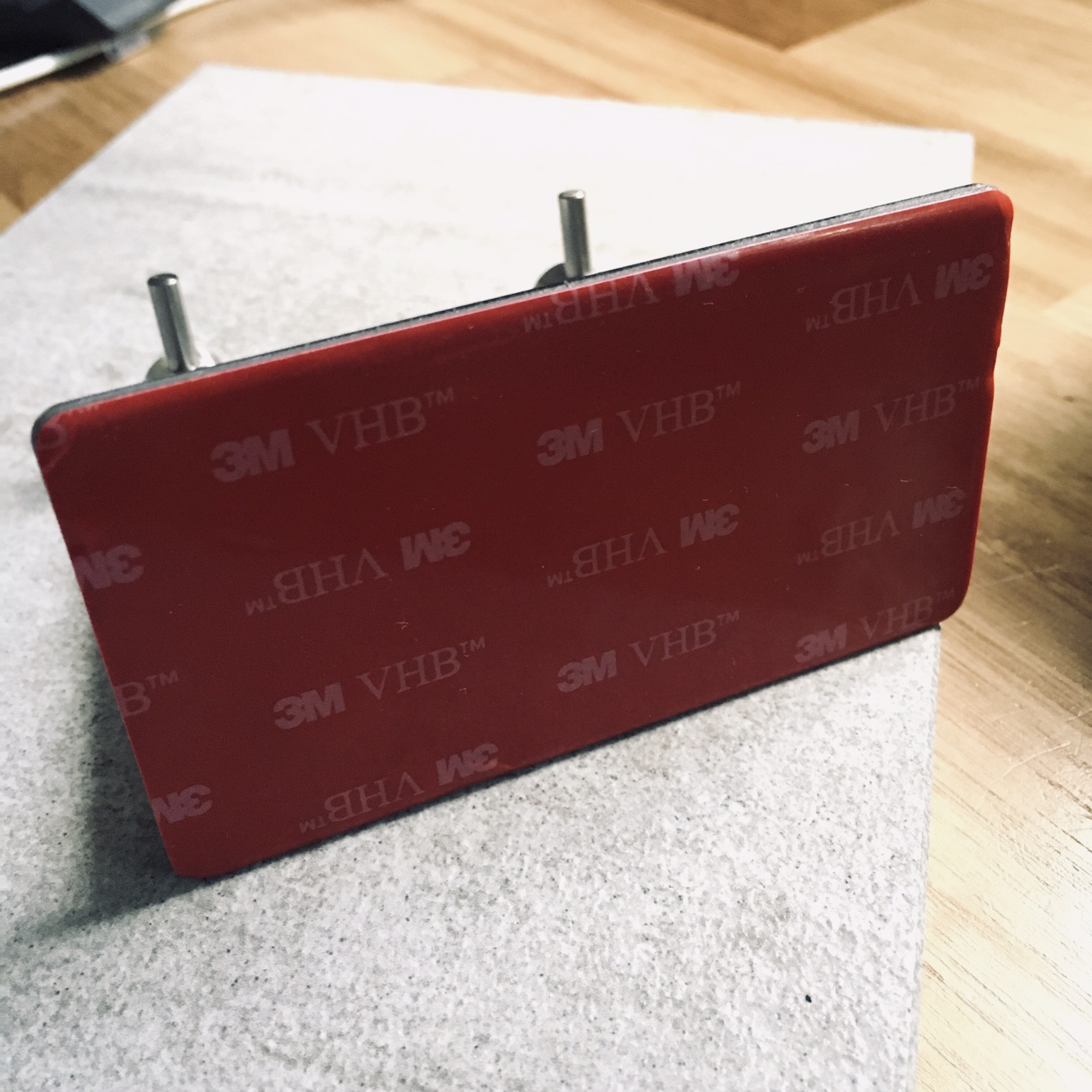 빨간색 보호 필름을 벗겨내니 끈적해 보이는 VHB 테잎이 두텁게 발려 있었다.