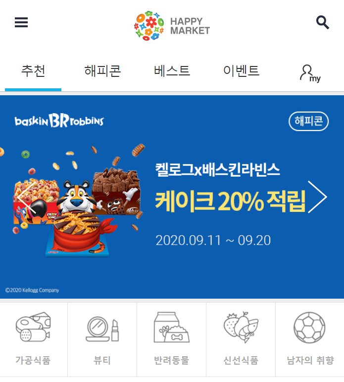 - 아래 그림은 해피마켓 웹 접속 스샷