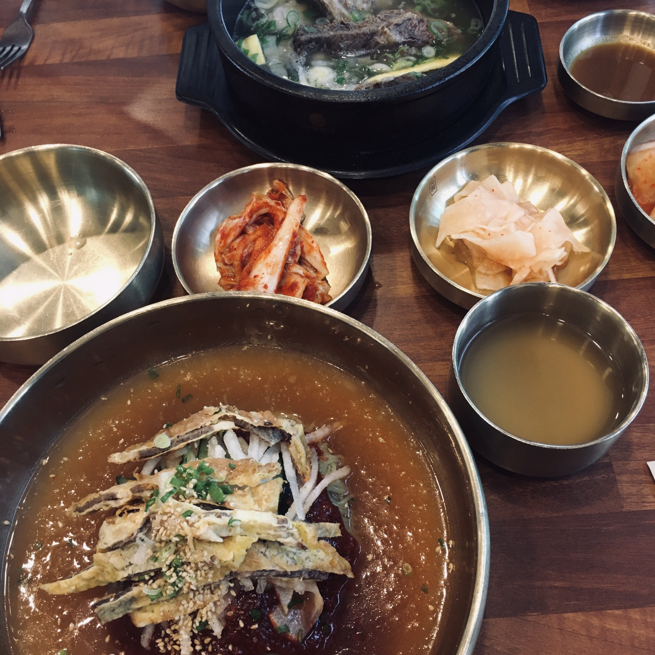 와이프와 아이는 특갈비탕, 나는 물비빔면을 시켰다.