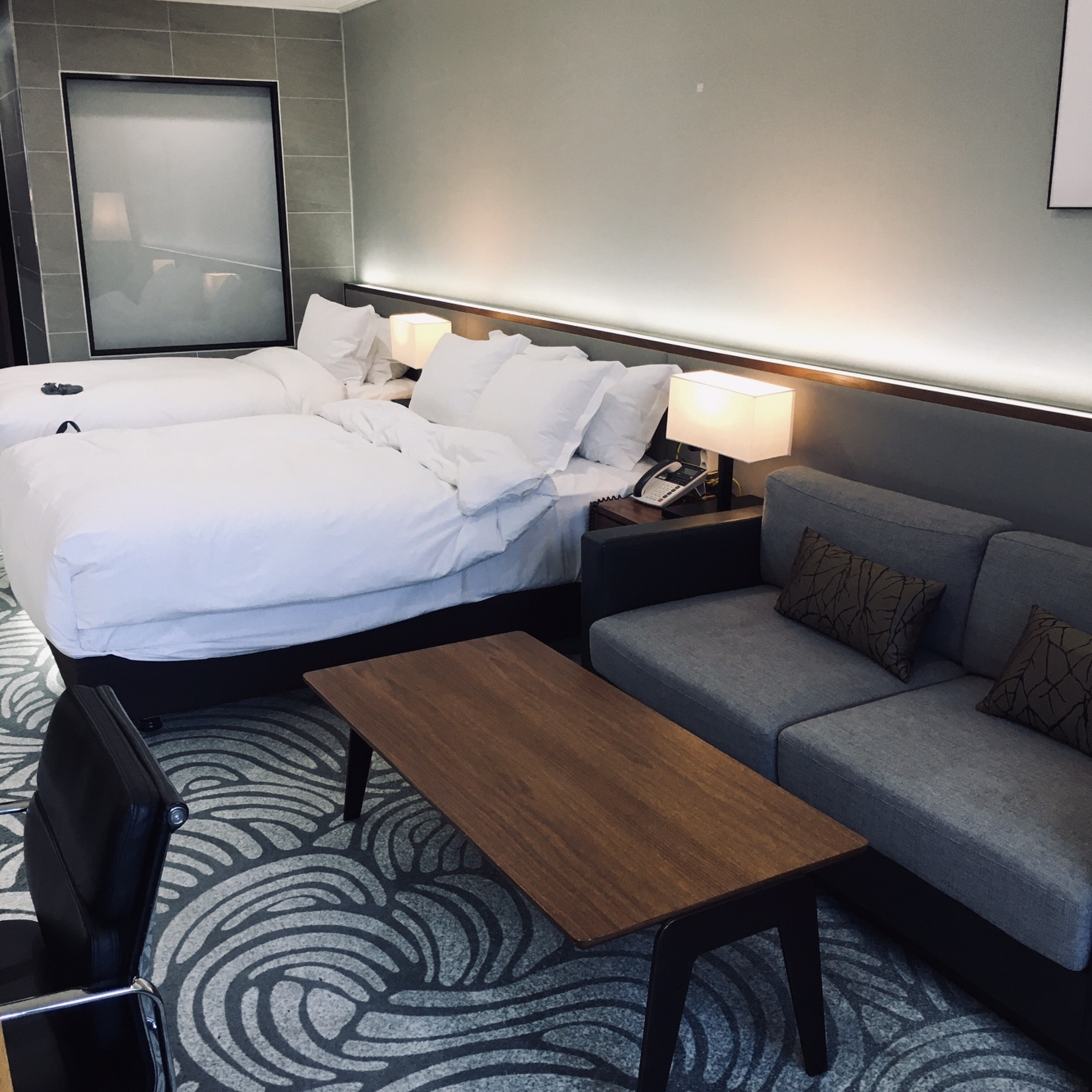 출장 때 자기도 좋고, 패밀리룸 빌려서 세가족 함께 가도 괜찮다. 우리가 묵은 디럭스 트윈은 침대를 붙이면 세가족이 자기에 충분하다.