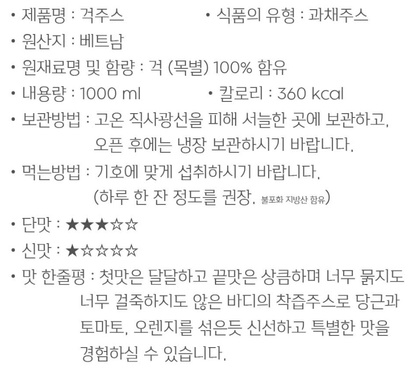 [VINUT] GAC / 객 객주스/걱 걱주스/게욱 게욱주스 1000ml : HRTCKOREA
