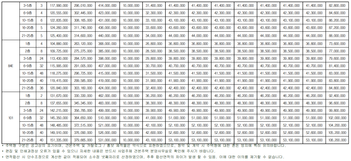 공급금액을 보니 국평(84㎡)의 평당가가 1250만원이 넘어갑니다.