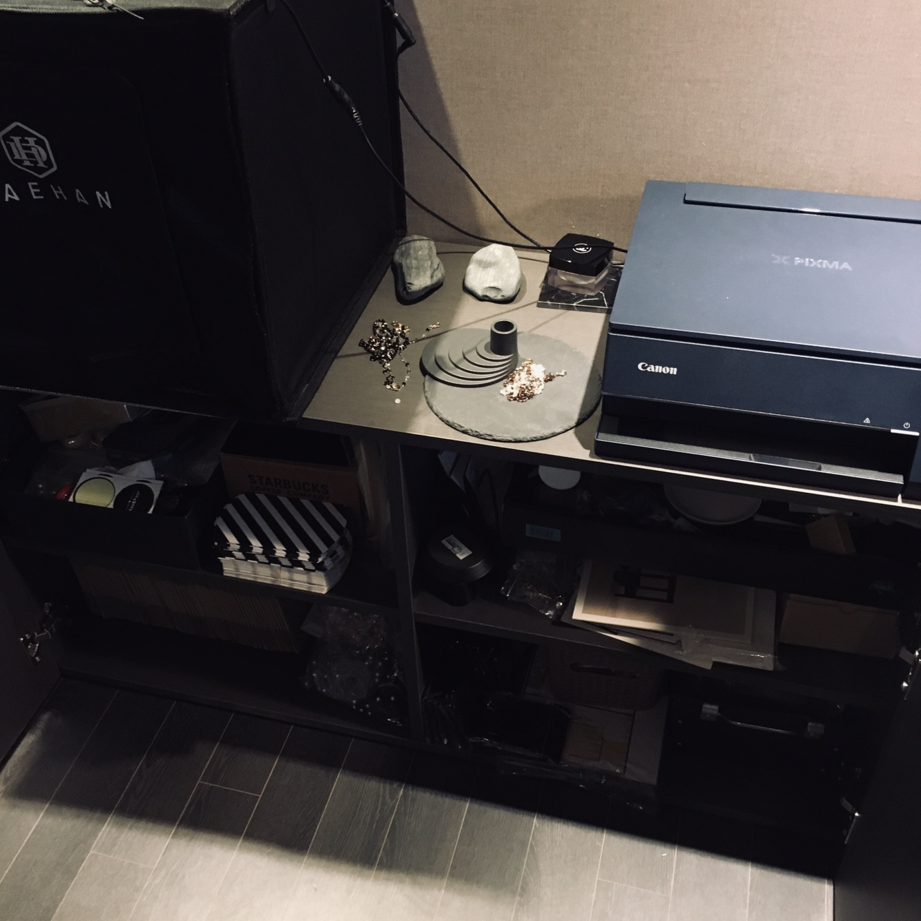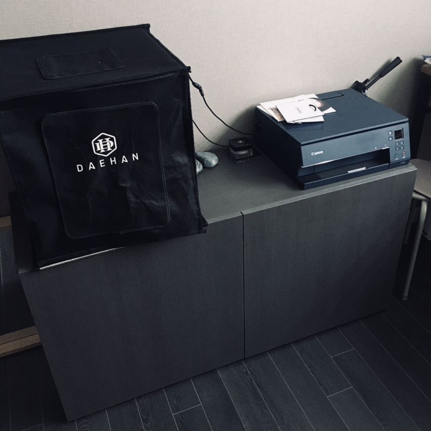 사진을 보니 죄다 새로 장만한 것들이다. 와이프의 작업공간인 포토스튜디오(DAEHAN)도 몇개월 전에 새로 장만했고, 오른쪽의 캐논 포토프린터도 최근에 장만했다. 상품 페이지에서 보이는 고급진 맛은 약간 떨어지지만(필름이 살짝 거슬린다) 이 가격에 이정도 내구성 이정도 디자인이면 대충 쓰기 딱 좋다.