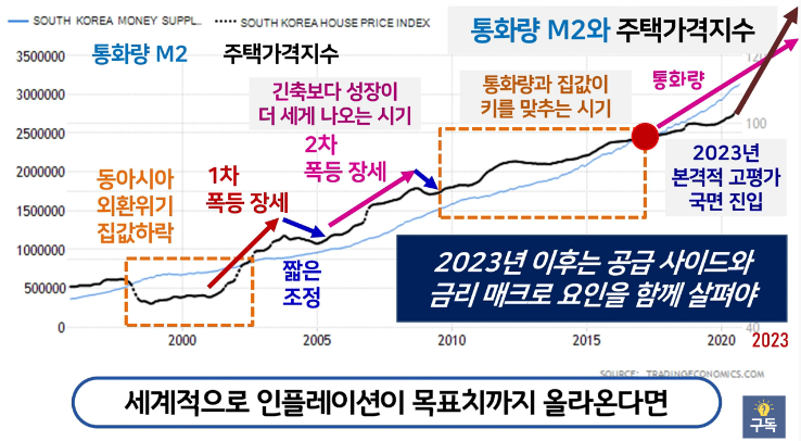 아파트값을 잡겠다는 정치인들의 이야기는 표와 지지율을 위한 전략적 발언이었을 뿐이라는 생각이 든다. 시장을 25차례 뒤흔드는 바람에 기형적으로 각 지역 핵심지 가격만 올렸다. 결과는 하위 중산층을 비롯한 집못가진 사람들이 내 집 장만에 대한 심리적 압박을 가한 꼴이 됐다. 때마침 코로나까지 터지면서 통화량이 폭발했고 올해부터 통화량은 더욱 가파르게 증가할 예정인데(21년 이후 경기부양 규모 : 미국2천조원/중국4천조원), 이런 흐름이라면 통화량 대비 주택가격 고평가 국면 진입도 예상보다 오래걸리게 되니 집값 상승 트렌드 역시 우리 생각보다 오래도록 지속될 수 있다.
